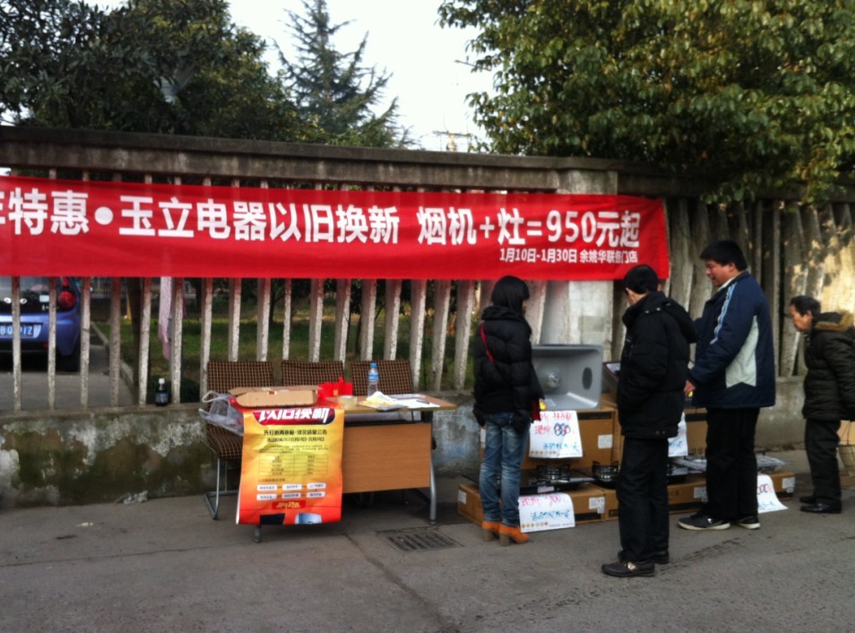 新年伊始,玉立電器在余姚地區舉辦了油煙機燃氣灶以舊換新活動,自2013年1月10號開始到1月30日,油煙機+燃氣灶換新價最低950元起,活動一開始便獲得了廣大用戶的一致好評,同時以細致的服務和專業的產品品質讓很多市民選擇了玉立產品。