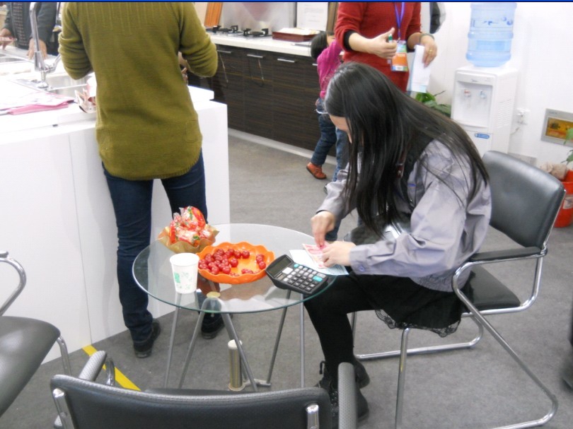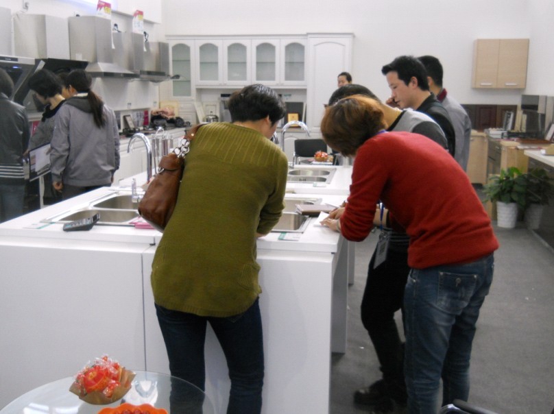 (邊傾聽講解廚電產(chǎn)品邊下訂單的客戶)